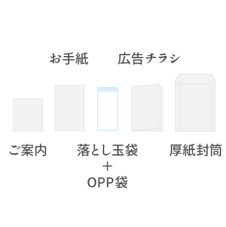 案内状・手紙・OPP袋・広告チラシ・厚紙封筒を予定しています。