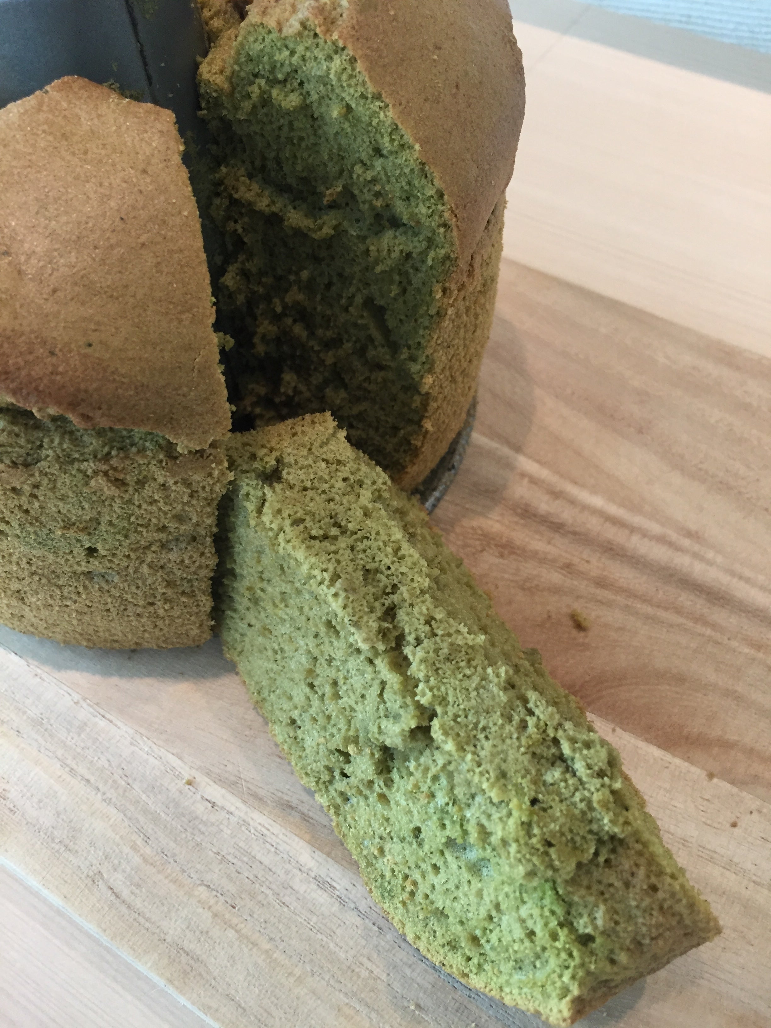 本日は、抹茶のシフォンケーキ。ご注文いただいてからお切りして提供させていただきます。ふわふわで美味しいですよ^_^
