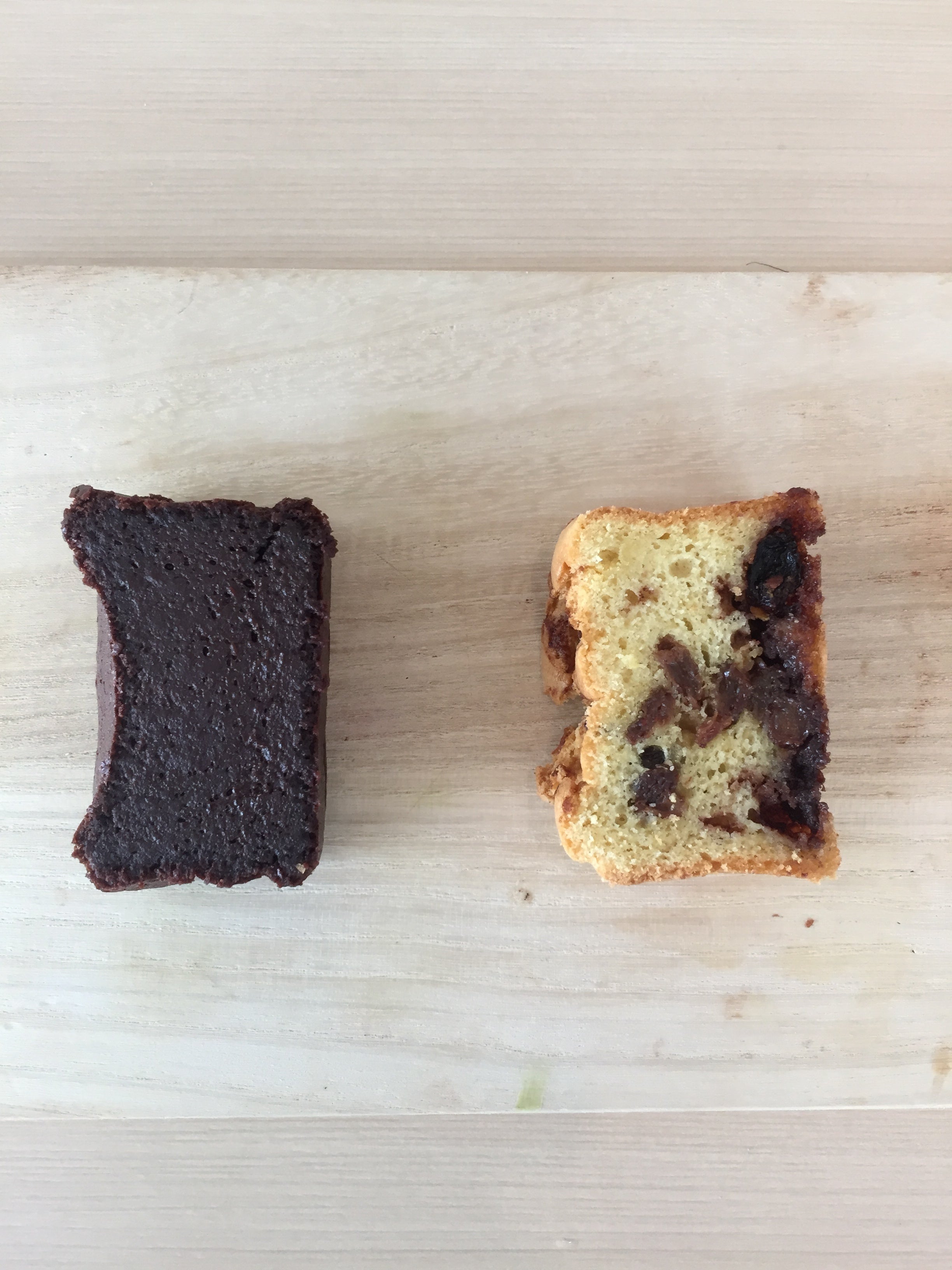 本日の焼き菓子は、生チョコタイプの濃厚なガトーショコラとラムレーズンとチョコのパウンドケーキ日替わりでいろいろな焼き菓子とケーキケーキを作ってます^_^