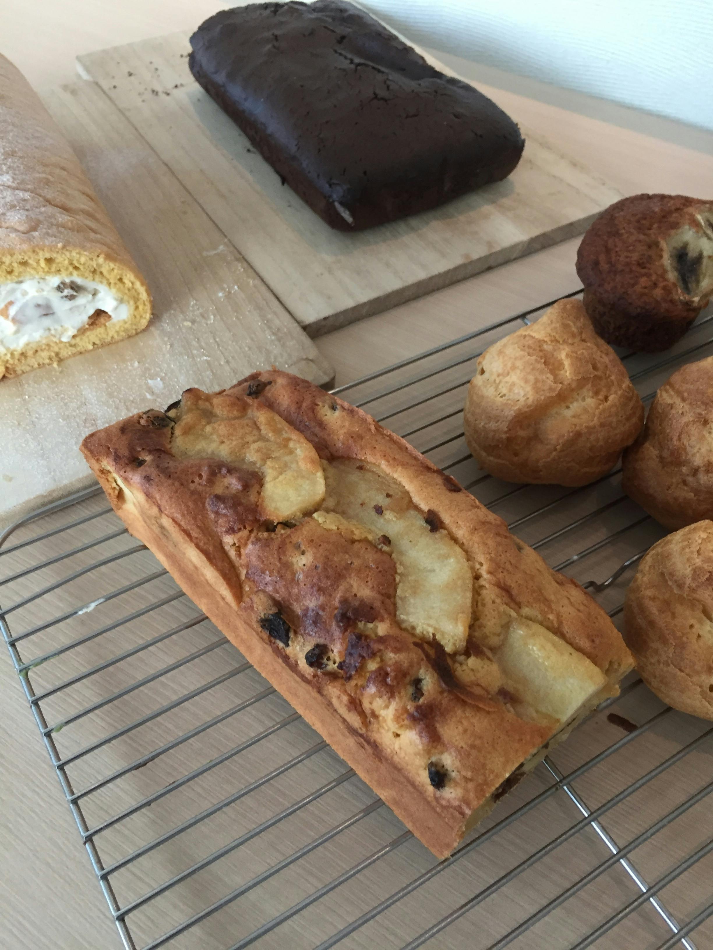 今日は、土曜日なので、沢山焼きました!ロールケーキ、リンゴとラムレーズンのパウンドケーキ、ガト−ショコラ、シュークリーム、ヴィ−ガンにバナナマフィン、これかシフォンケーキを焼きます。是非、皆様にも食べていただきたいです。