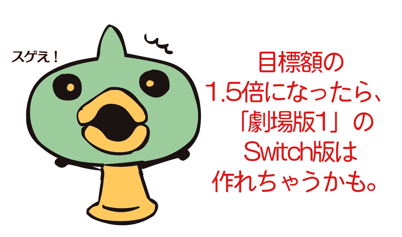 残り期間と、現在の感じから目標は達成できるかもしれないと思っています。 そして、もし目標額を超えて、トータルで150万集まったら、「劇場版1」のSwitch版までは出せそうです。 そうすることにより、ゆるゆる開発資金が月々の売り上げでできていき、どんどん後作を出せるようになるかもしれません。引き続き、支援者を求め、頑張っていく次第でございます!