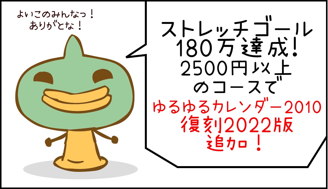 あと、後ほど、支援金総額が117万を超えたあたりで、カレンダーだけの購入ができるコースを追加しようと思います。