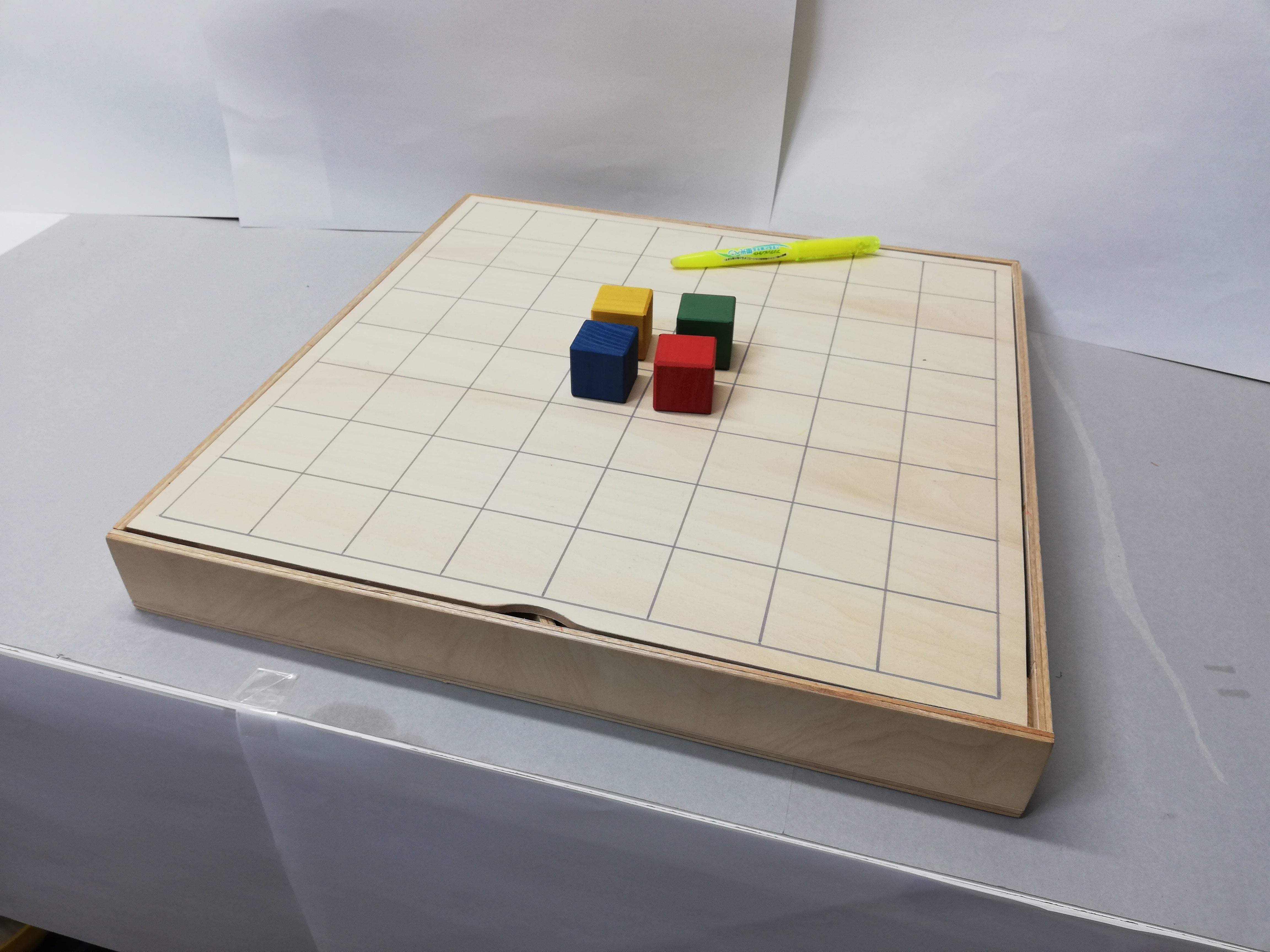 ボードの下にコマを収納できるよう立体形状(約40㎝×40㎝×5cm )となっています。