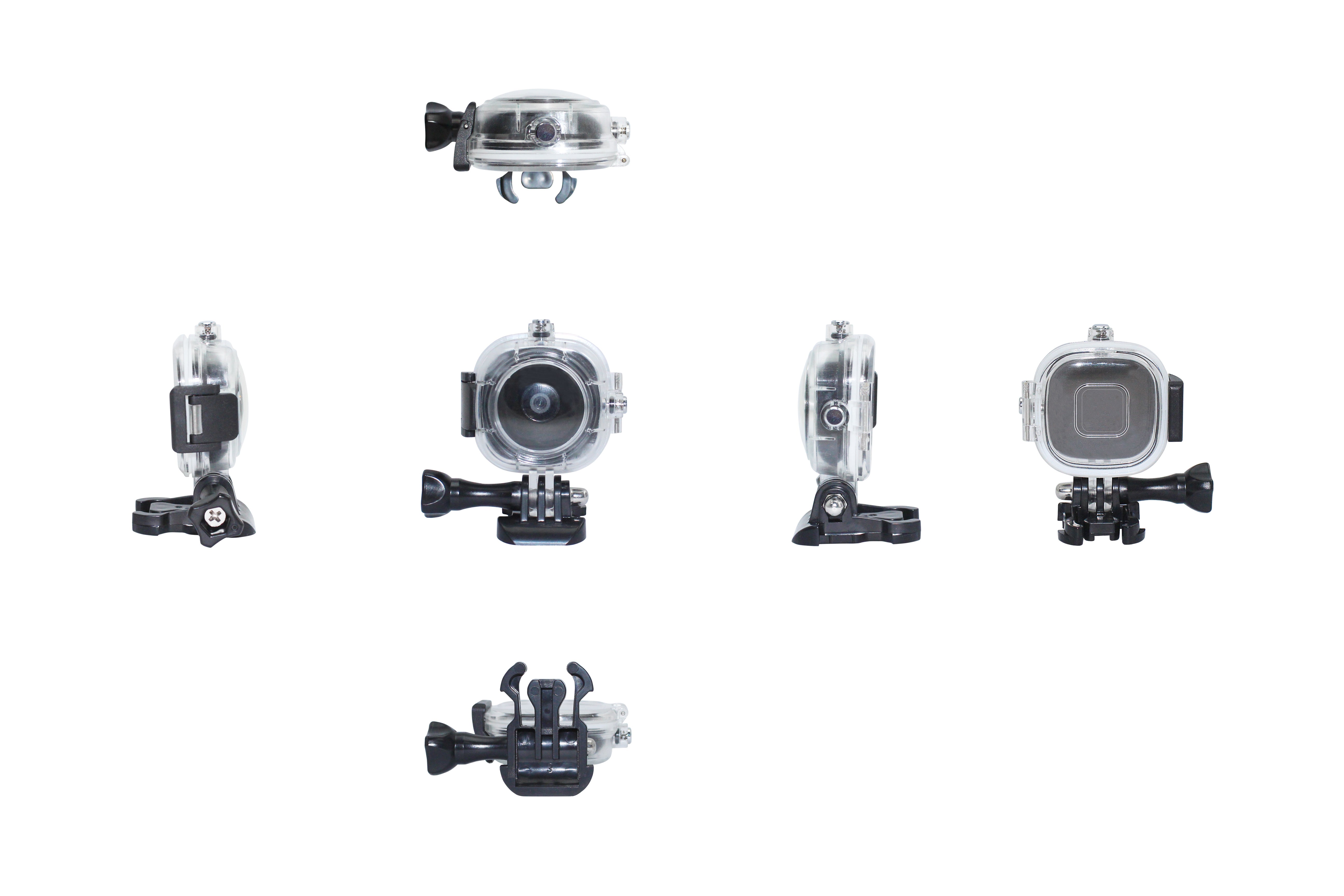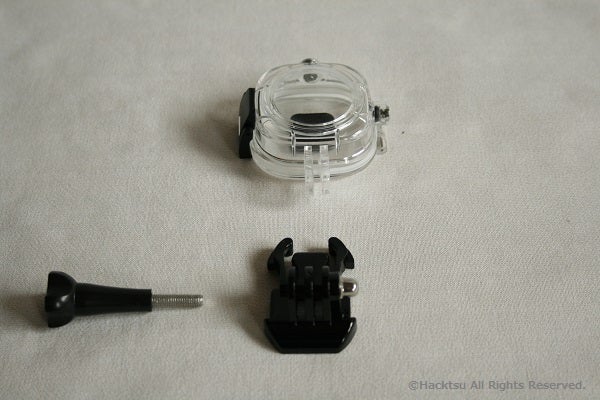 【どこでもアクションカメラ】の専用防水ケースは、Go proのマウントなどに互換性があります。