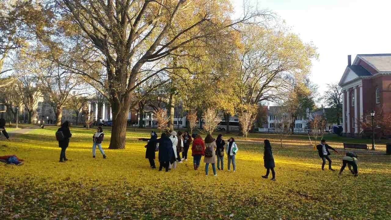 イエール大学での一コマです。一面が黄色い絨毯のようで、美しい景色にみんな童心にかえっています。すこし緊張がほぐれた瞬間です。常夏フィリピンっ子にとって色づくイチョウが新鮮。シャッターを切って、束の間の旅行者気分も満喫しました!一見すると、秋のようですが、気温は氷点下4℃まで下がりました。あたたかい国から来た私たちは、体調管理が大変です。早くも風邪をひいてしまうメンバーも。ディベートや筆記テストに影響が出ませんように。