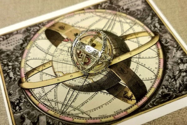 その時代の産物がこの天球儀指輪です。その原型は今スウェーデン国立歴史博物館に所蔵され、似たようなものはイギリスの大英博物館にも所存されています。(クリックすれば博物館の公式サイトで写真が見られます)