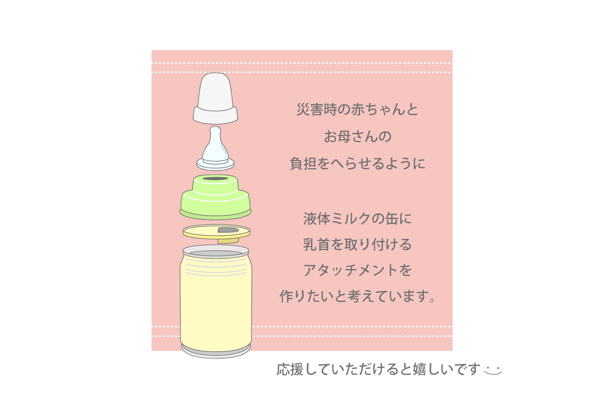 我が家にも0歳児がおり、先日の台風直撃時にはミルクの心配がありました。 こういった商品があれば安心して備えておけるので、ぜひ商品化できるよう頑張ってください。