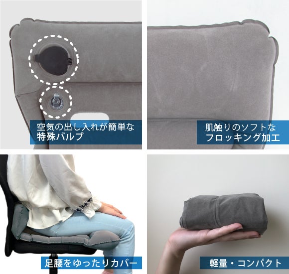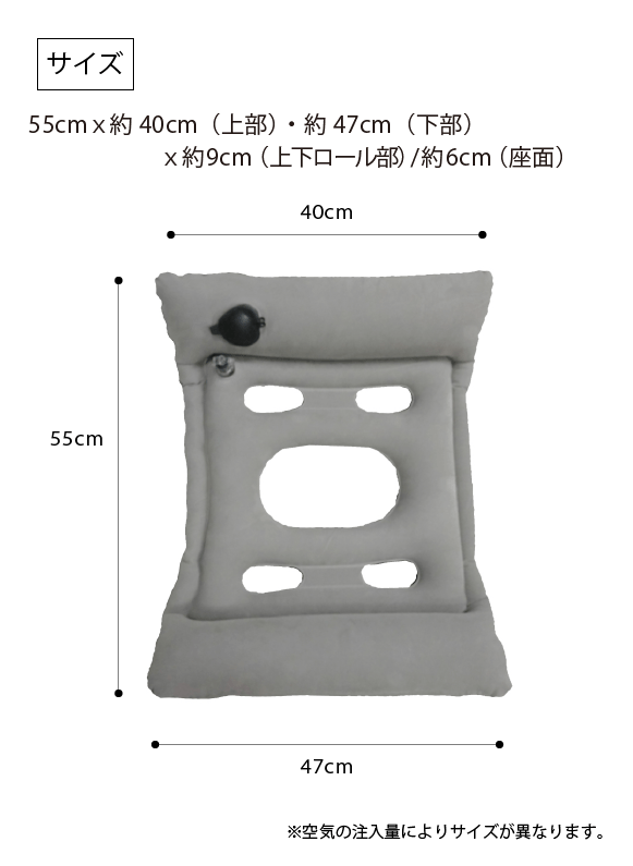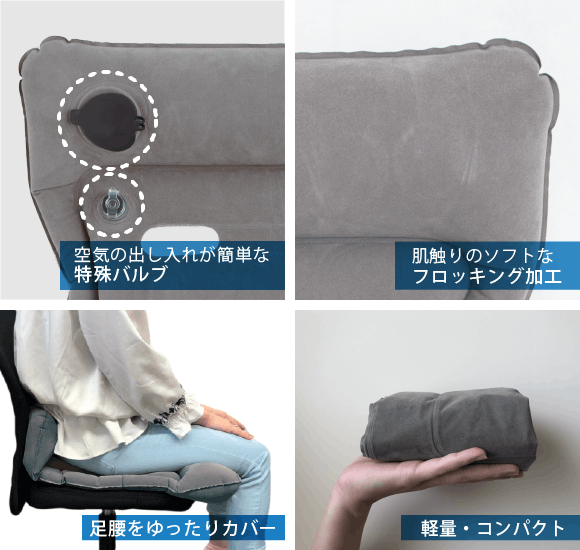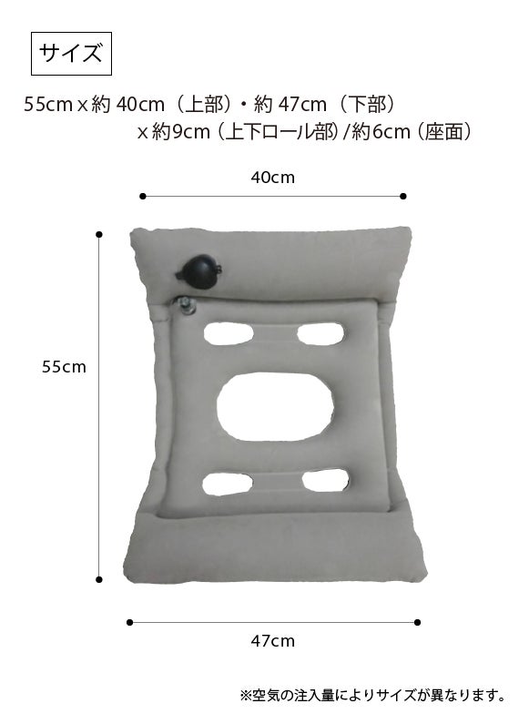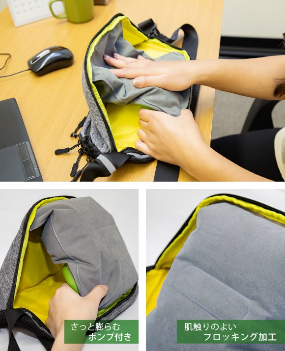また、空気の入れ具合でエアーピローを調節出来ますので、お好みにカスタマイズしてお使いいただけます。