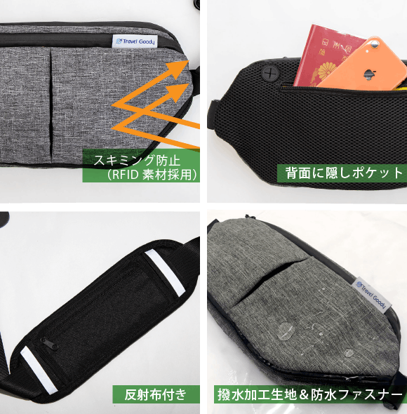 スマートフォンやパスポートなど、肌身から離したくない大切な物を入れられます。