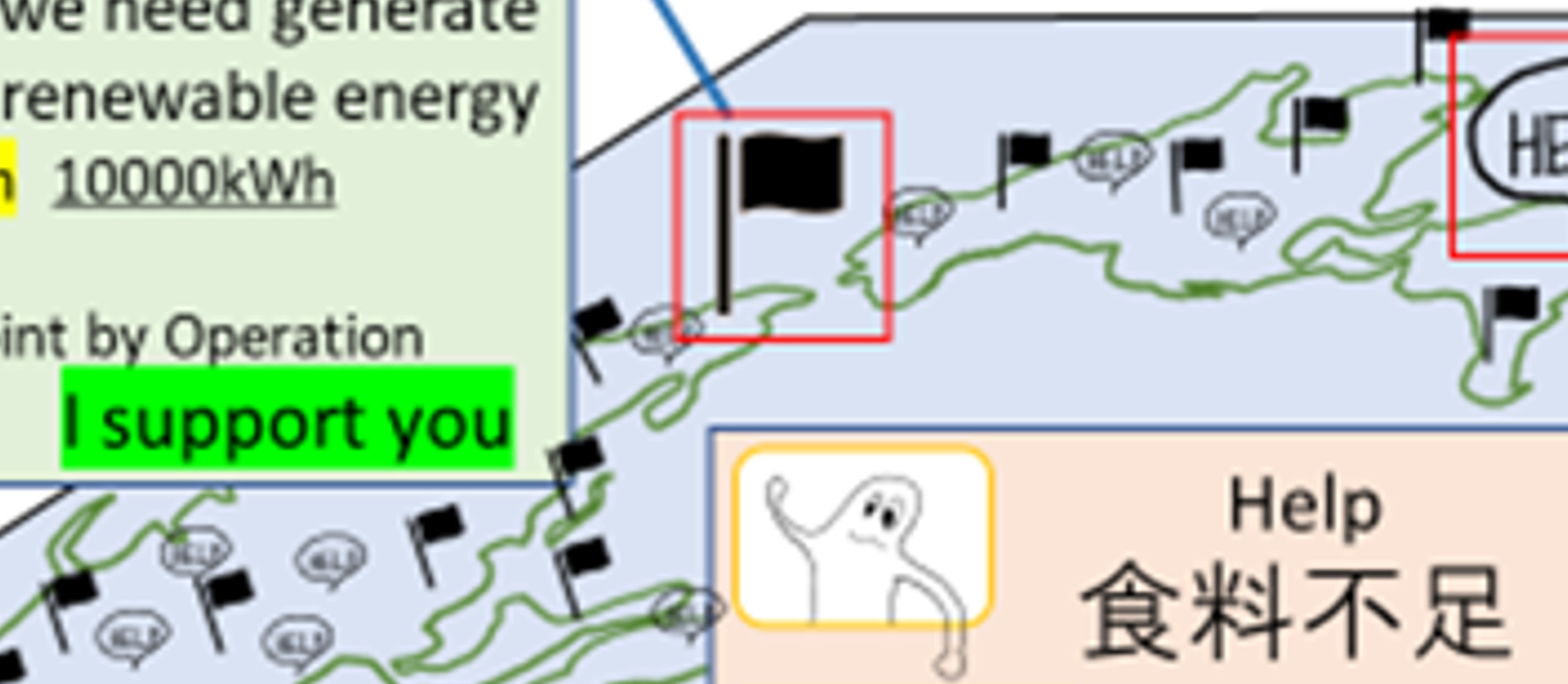 1 自分の困ったこと、悩みなどを問題として、マップ上にミッション(🏁)を立てます。