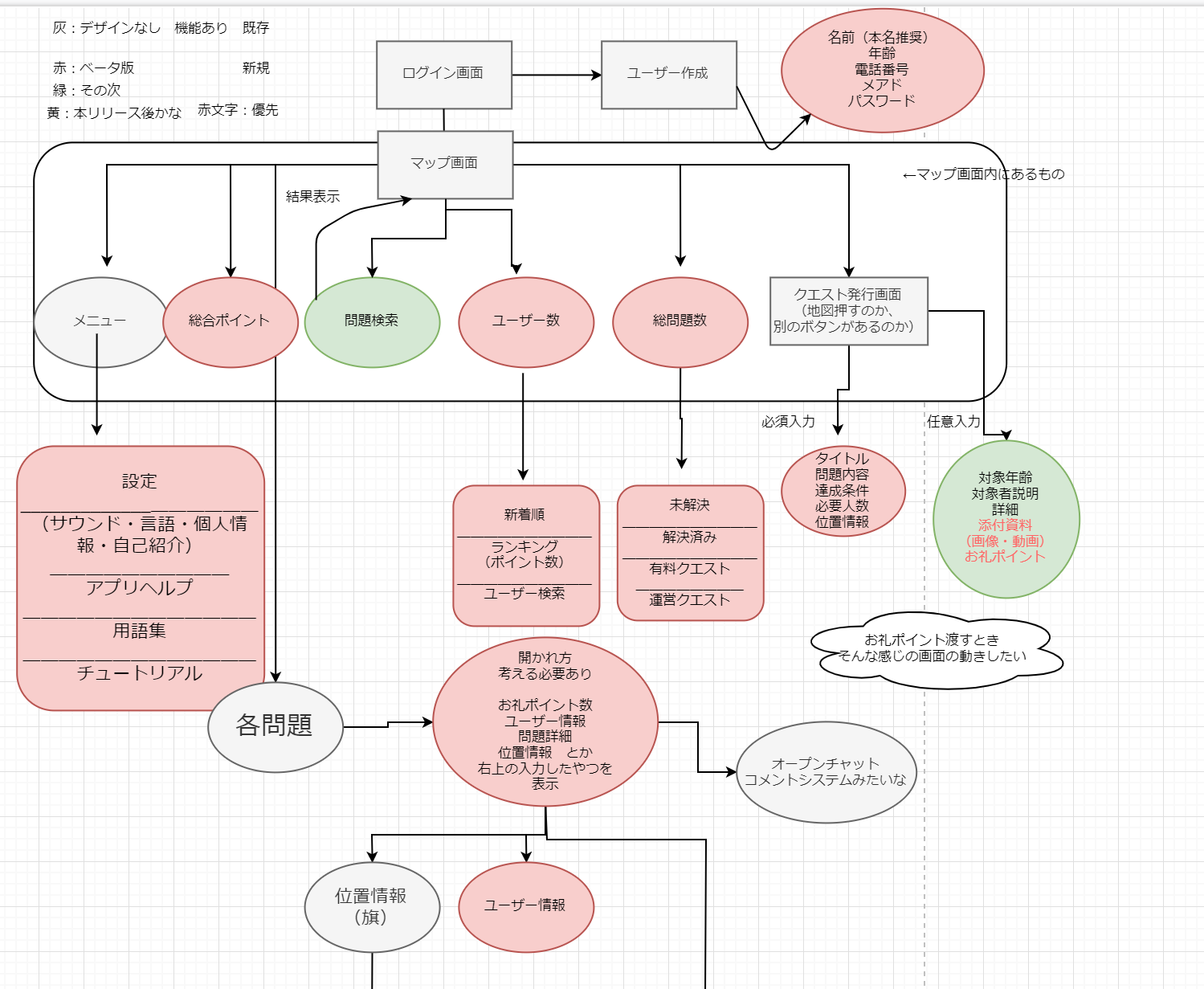 機能は主に (マップ・GPS・記事投稿(🏁)・オープンチャット・ポイントシステムなど)があります。