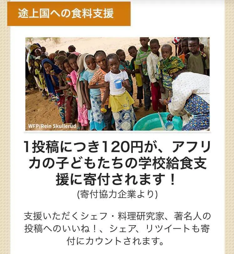 また、このイベントでシェフがつくる料理のレシピを#ゼロハンガーチャレンジ #wfp をつけてSNSに投稿し、国連の “食品ロスの取り組みを途上国の食糧支援につなげる”『Zero Hunger Challenge』に参加させていただきます。
