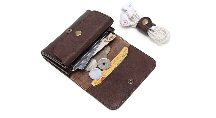 折り畳んでカバー付きポケットに収納することも、2つ折りにしてカードポケットに収納することも可能です。ちょっとしたお買い物で一万円札を崩してしまっても、お釣り分の千円札9枚もしっかり収納できます。