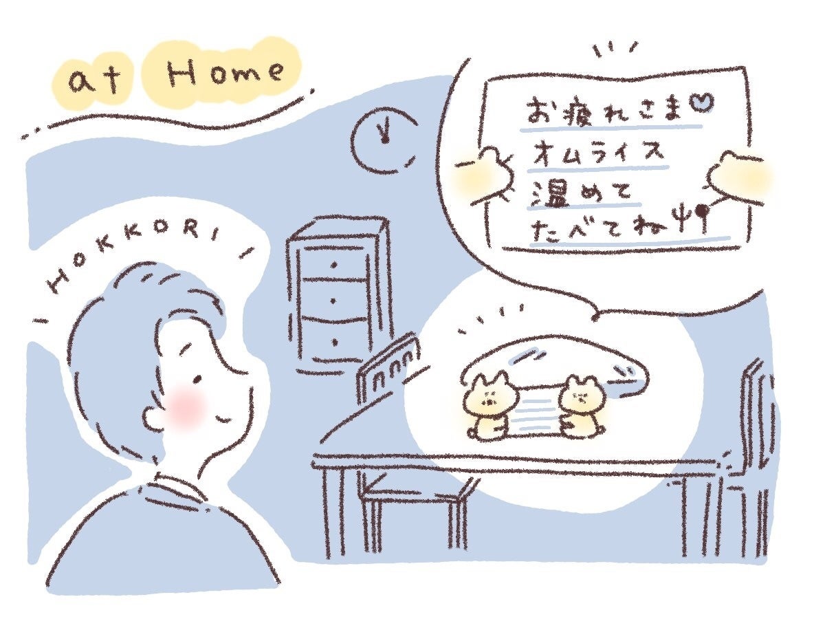 帰りが遅くなってしまった旦那さん宛てのメモ。こちらも、ハグさせてみてはいかがでしょうか。