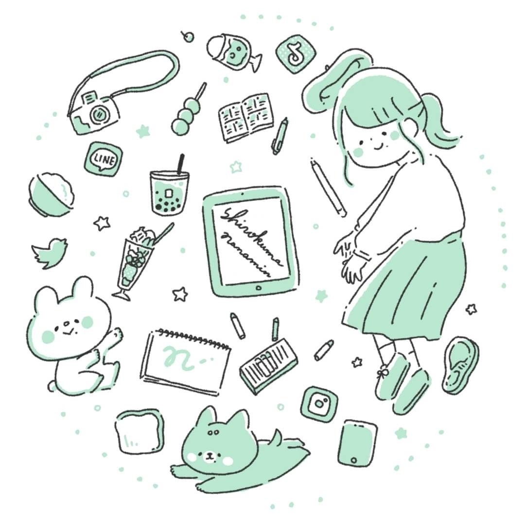 オリジナルキャラクターの「しろくまななみんとおしばさま」をはじめ、SNSでは日常を描いたほっこりする絵日記も発表しており、イラストだけでなく本人のキャラクターも魅力の一つ。