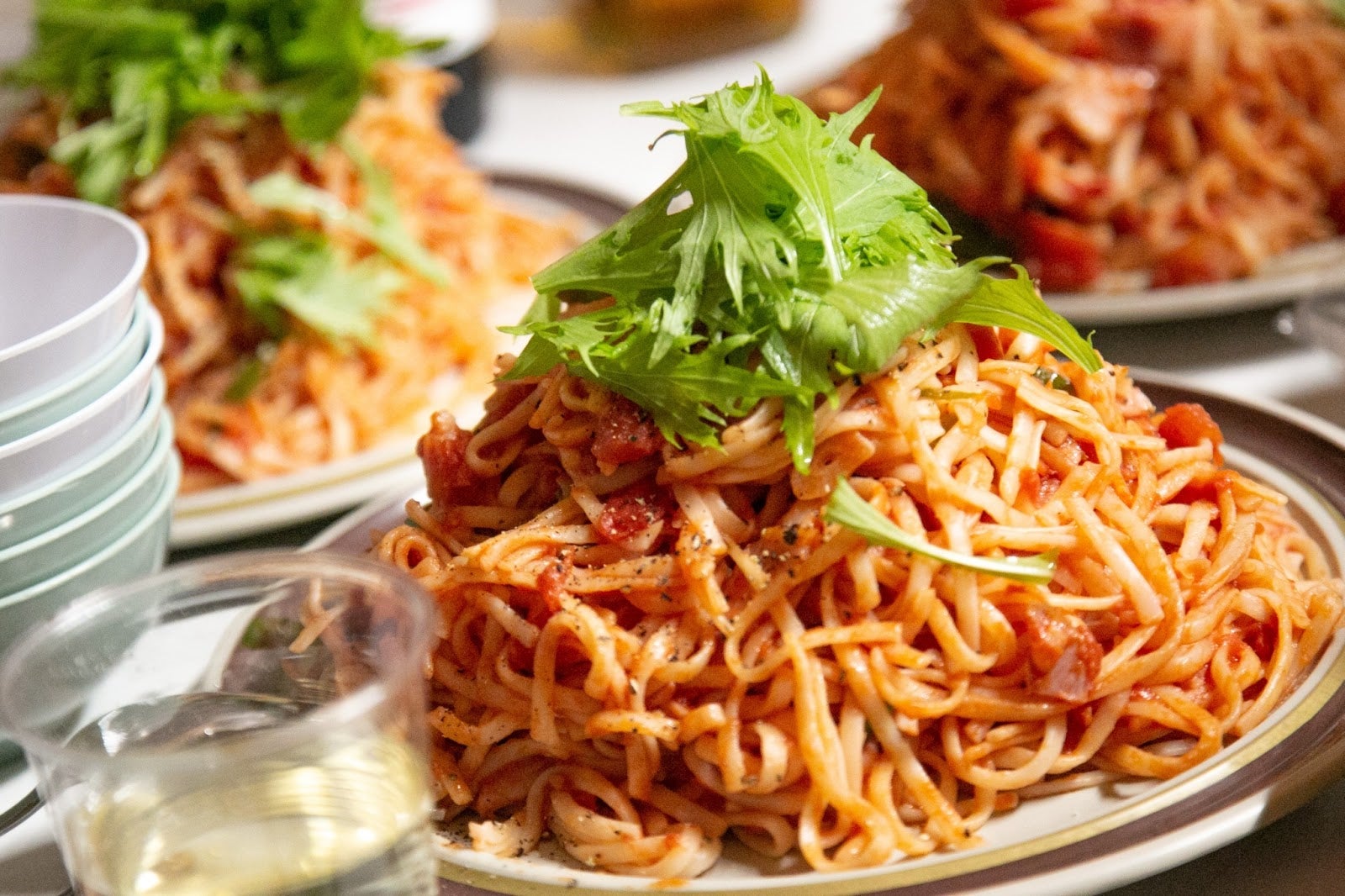 (みんちゃんが作ってくれた山盛りのめちゃうまパスタ。本当にみんなよく食べる、食べる、飲む。これまた天川のお水が美味しすぎて、安ウイスキーの水割りがものすごい美味しさに。)