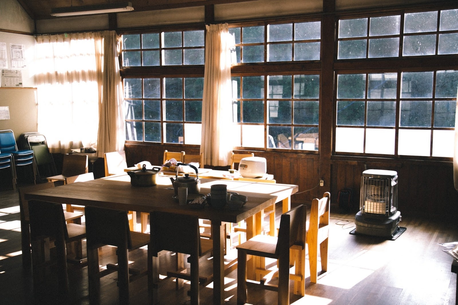 生徒たちの気配と愛情をたくわえた教室、光をゆらゆらと泳がせる昔ながらのガラス、