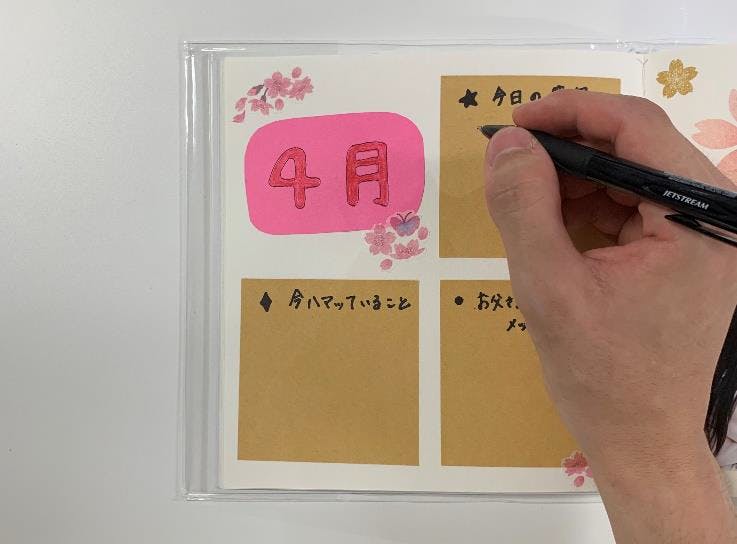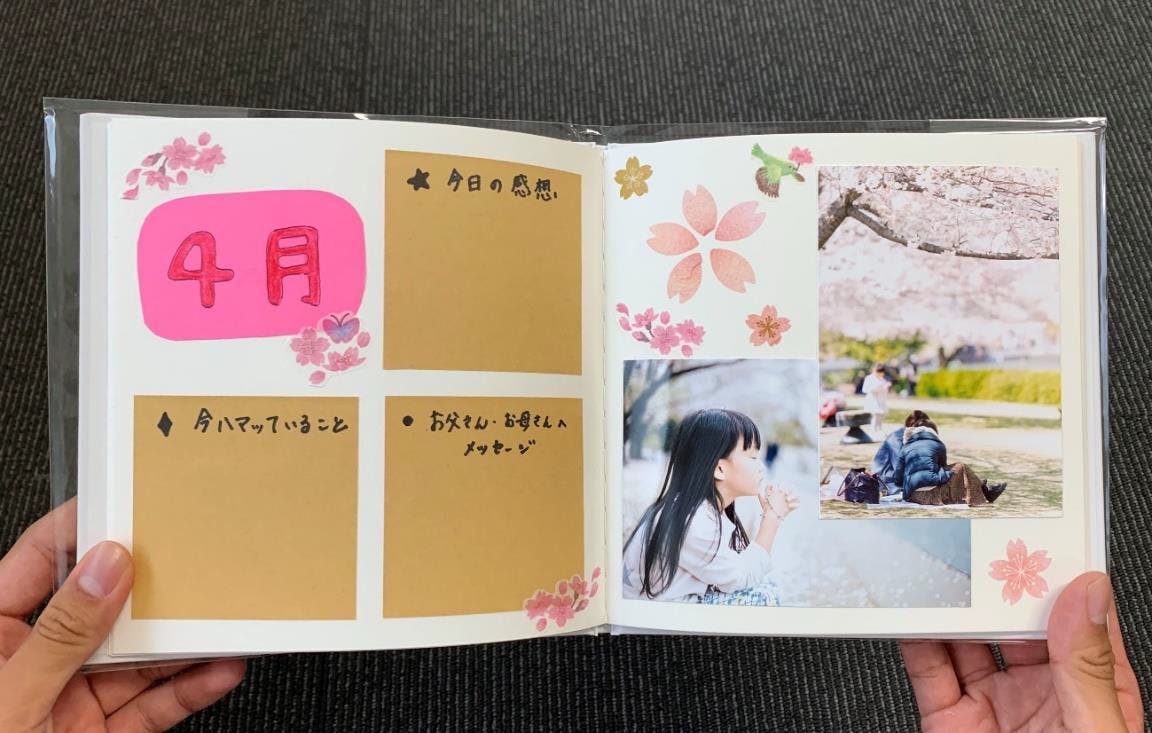 各月ごとに見開き1ページ分を用意しているため、毎月ご家族でアルバムを作成できるようになっています。