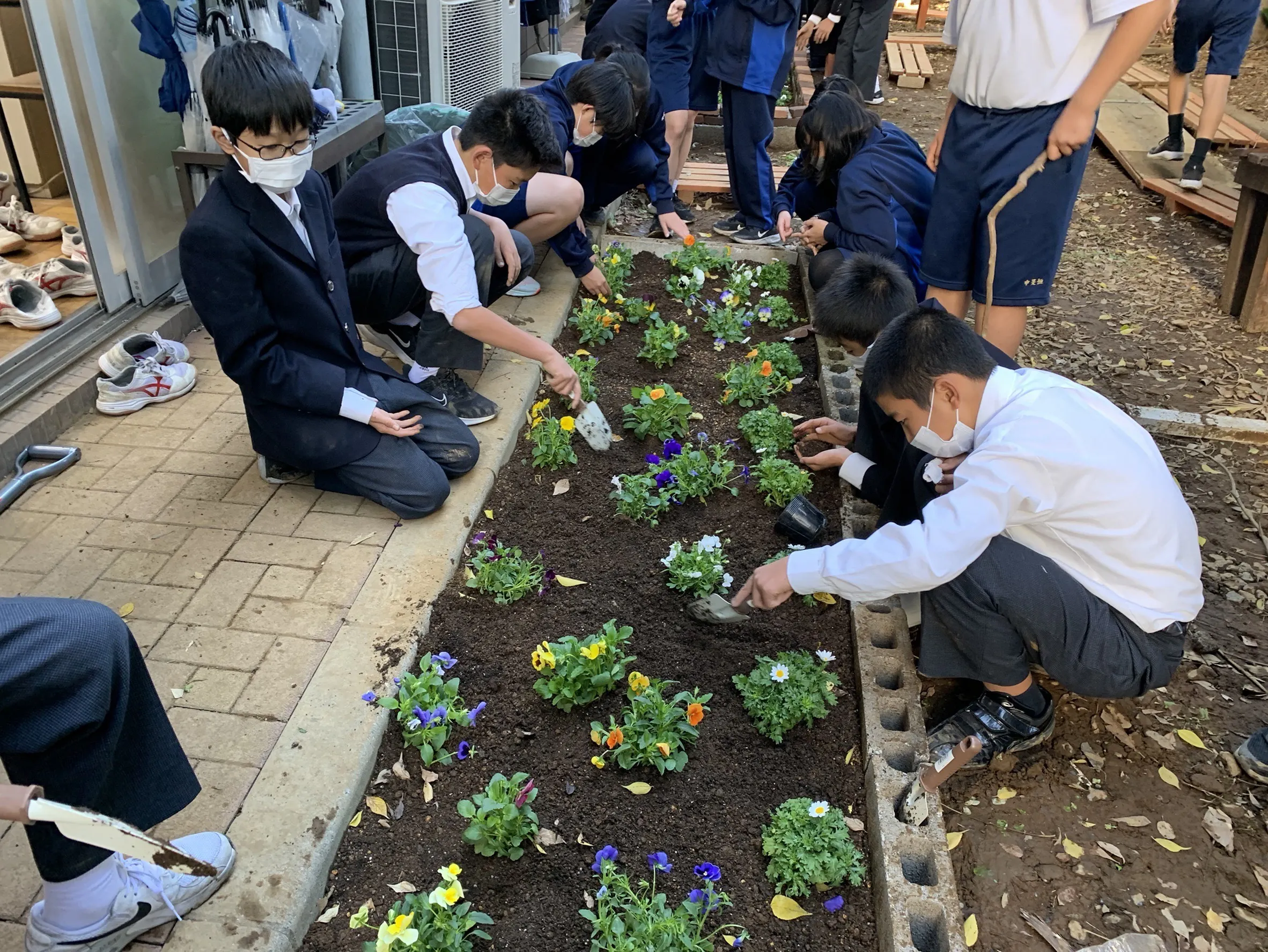 全ての教室の前に花が育っています。
