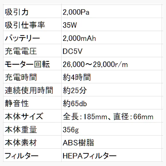 ハンディクリーナーでは「パワーの強さ」の数値ばかりが強調され
