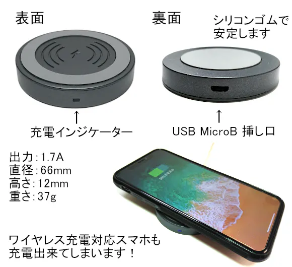 (ワイヤレス充電対応スマホ。機種により相性が生じる場合がございます)
