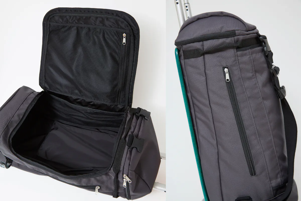 持ち手のハンドルを伸ばしてキャリーバッグとして、付属のベルトを使えばリュックとしてお使いいただけます。