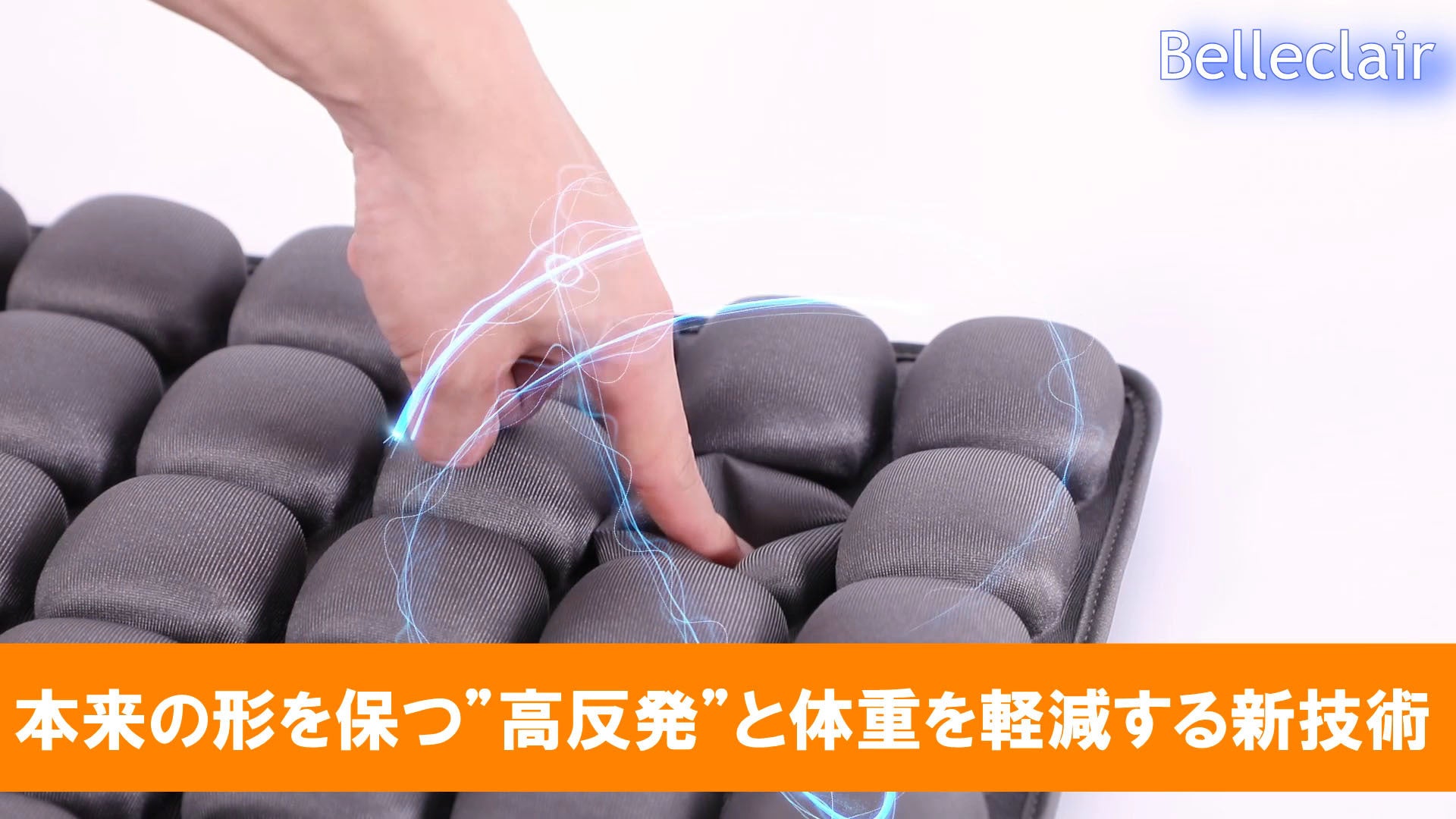 空気の塊のエアセルに座ることにより体圧を分散し長時間座っていても快適さが持続します。