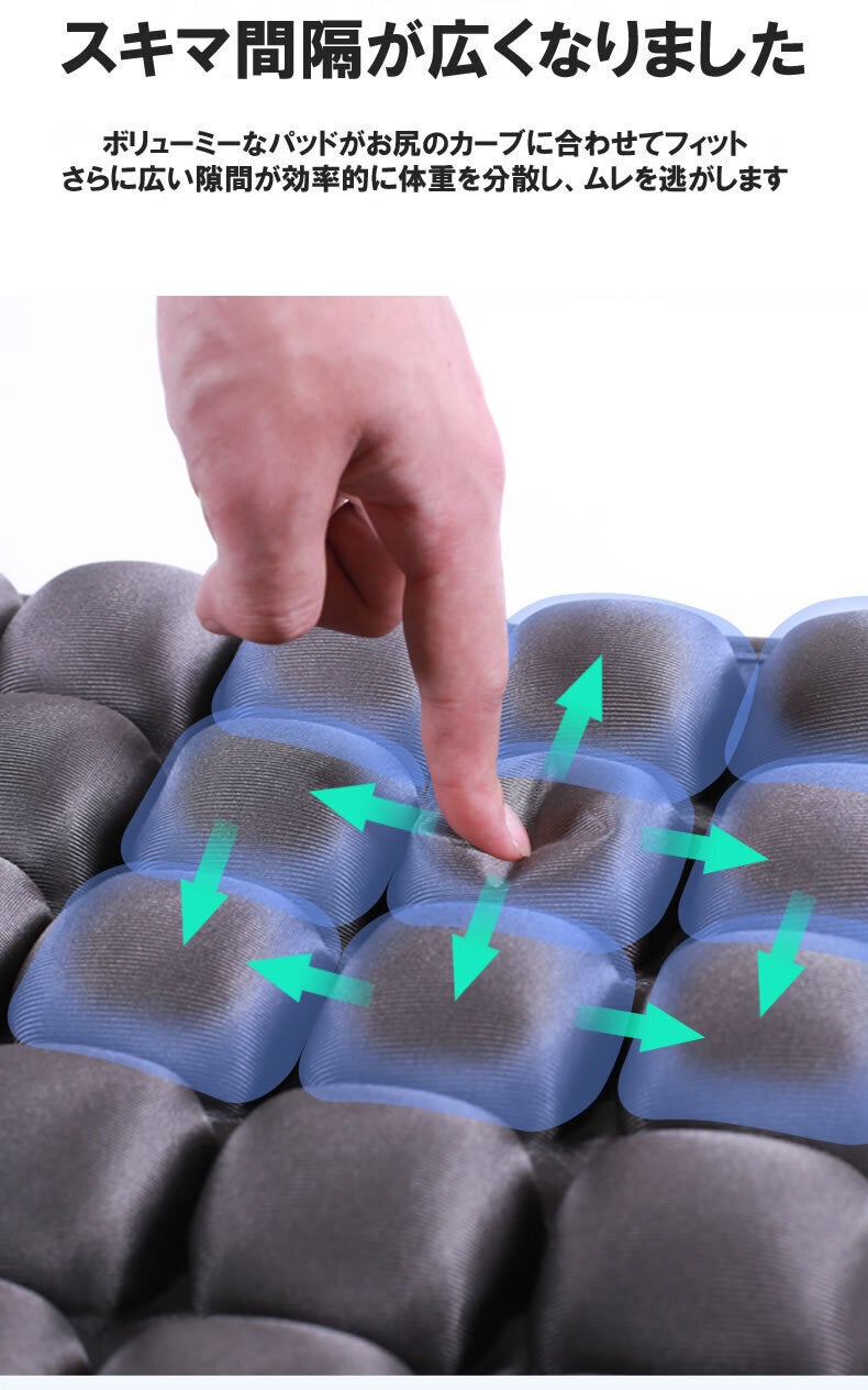 このエアクッションなら体圧分散によりいつもよりお尻への負担が軽減されます。