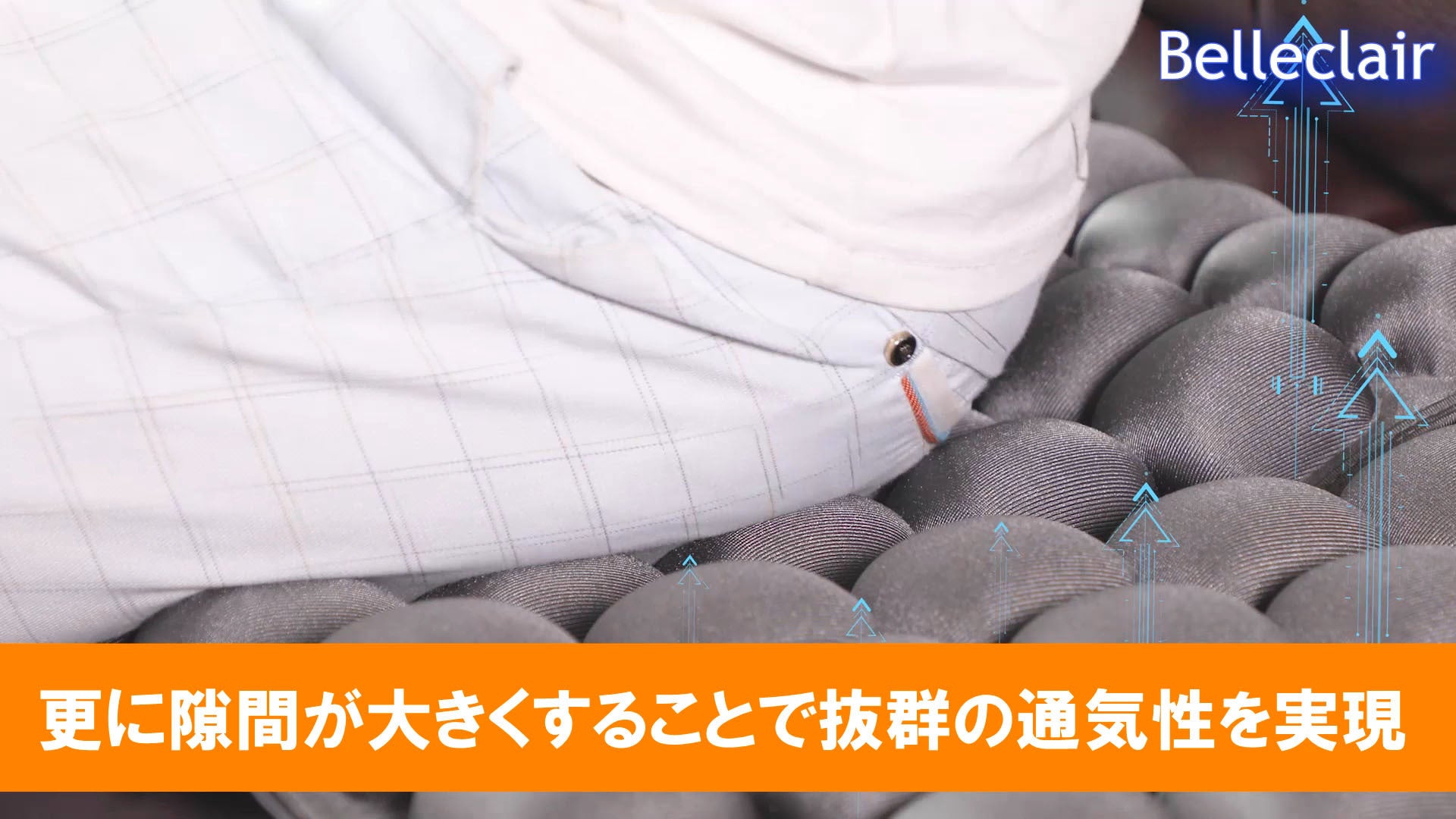 エアセルは1つ1つの間があいていて動くたびにその間をを空気が流れ快適な環境を作ります。