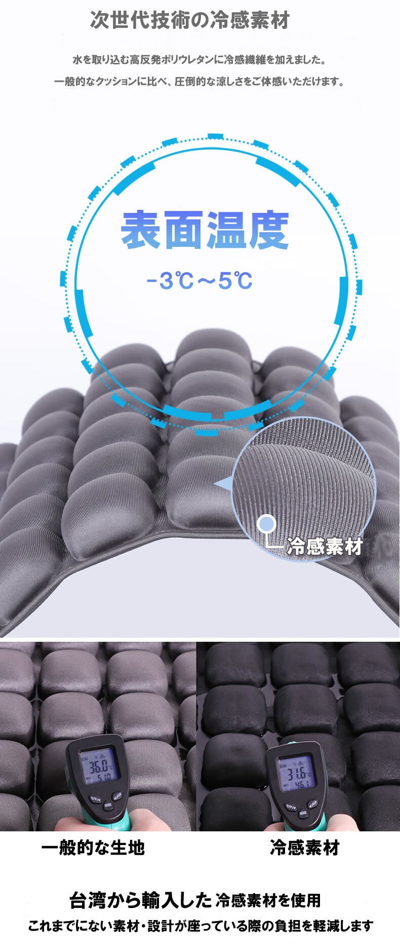 更に更に座った時の快適さを追求するためにエアクッションの表面に冷感素材を採用しました。