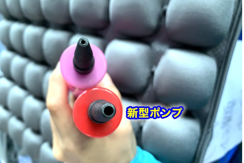 この新しいポンプであれば穴も大きくシュコシュコとエアセルに空気を簡単に入れることが出来ます。