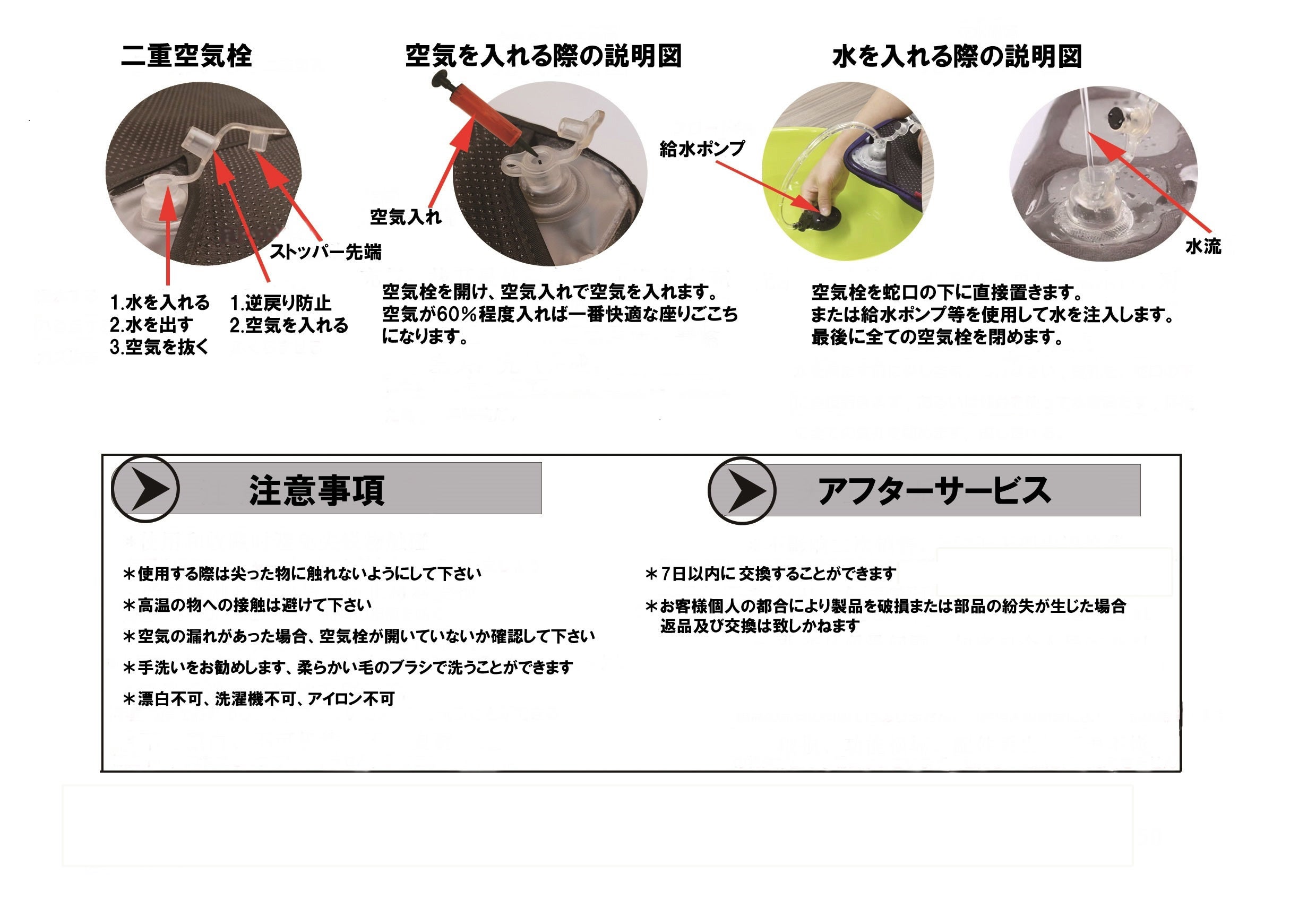エアセルの中に水を入れることで冷感素材が適度に冷やされお尻とエアセルの接点を快適な温度に保ちます。