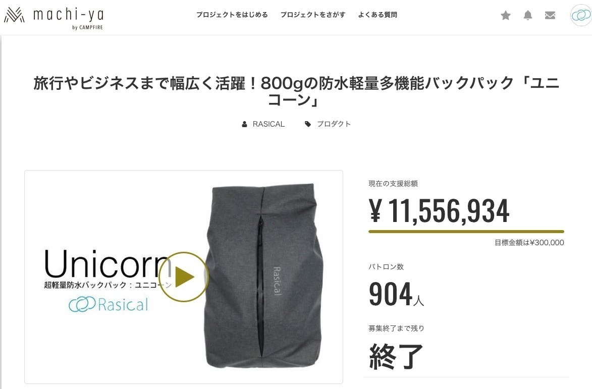 また、2018年7月にミニマリスト向けの製品「ユニコーン」バックパックや「ニルウォレット」「マグッピ」などの製品化をクラウドファンディングで募った所、すぐに目標を大幅達成し、製品化しています。