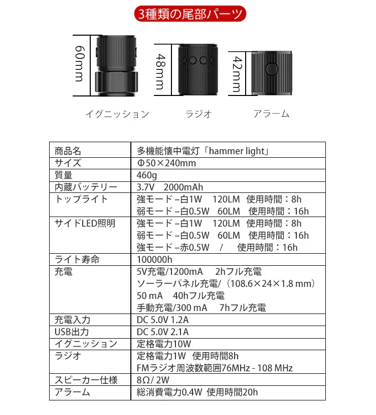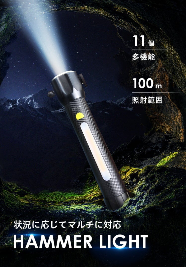 そんなもしもの時に備え、必要な機能を一本の懐中電灯「HAMMER LIGHT」にまとめました。