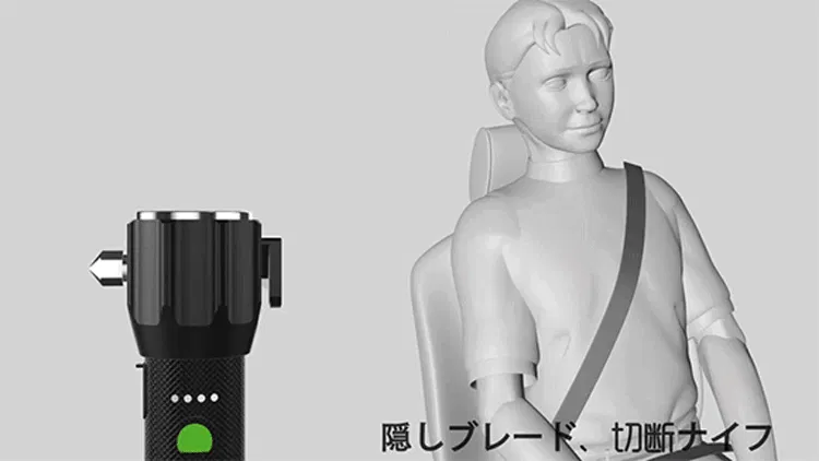 「浸水が進んで車の扉が開かない」「地震の揺れでドアが歪んで室内から出られない」など・・・そんな時に大きな力を必要とせずとも、女性やお子様の力でもガラスを割って緊急脱出ができるようにと考えました。