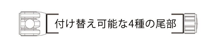 2種類の本体と頭部パーツ、4種類の尾部パーツを組み合わせることができます。これにより、たった一本で11もの状況に対応可能。