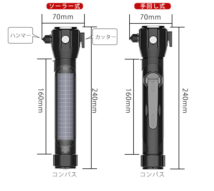 ※「ソーラー式」「手回し式」共に尾部パーツ「コンパス」が付属しています。