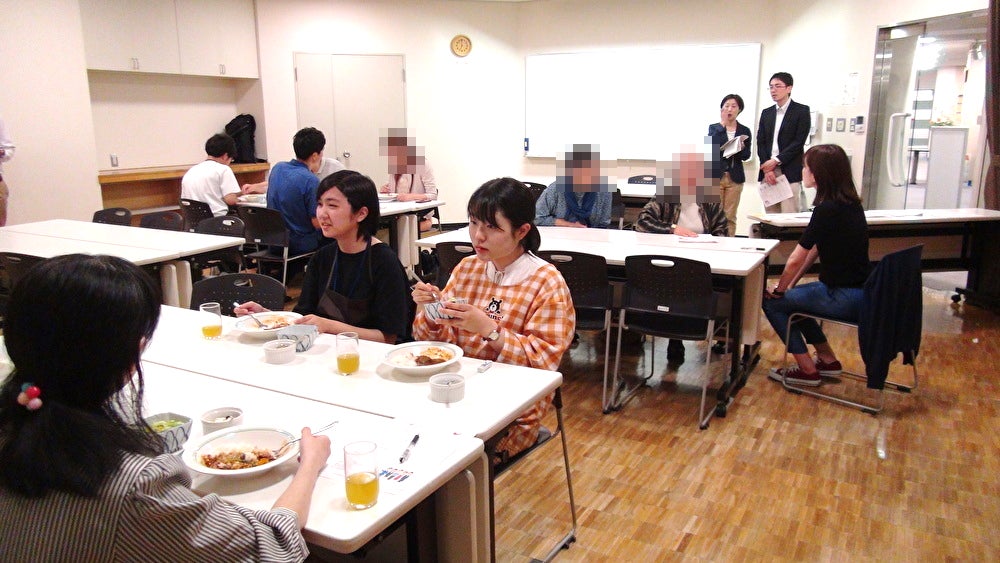 学生やユニオンの組合員が、参加者と一緒のご飯を食べながらお話を聞きます。