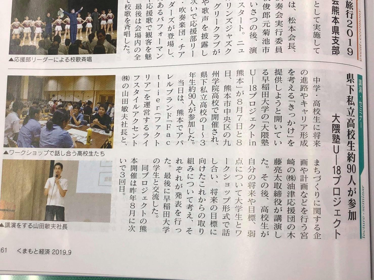 今年の8月に熊本県で行われたU-18では、4日間で約200人の高校生が参加し、その様子は新聞や雑誌に取り上げられました。