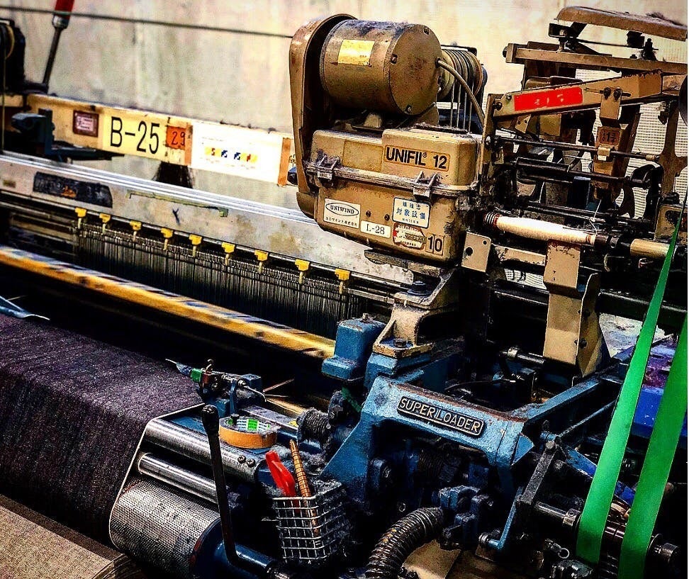 この織機で織る理由は、色落ちの風合いを極限まで追求するためです。これで織ることで適度な不均一さが表れ、色落ち後に独特の風合いを出す事ができます。