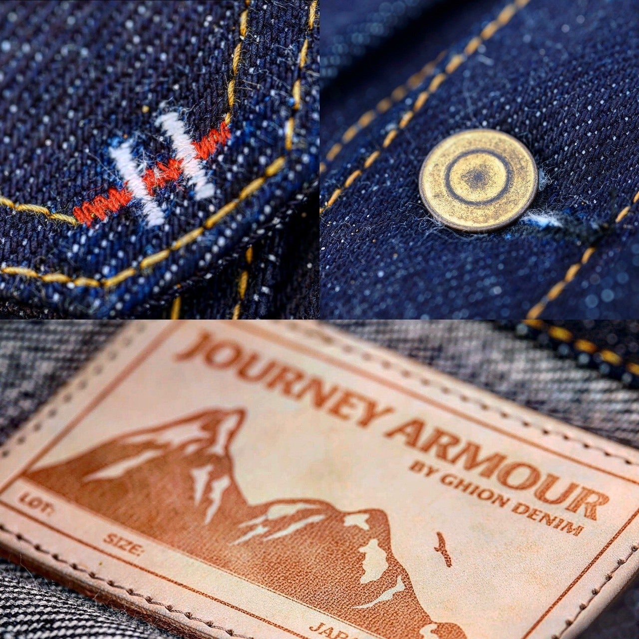鉄板のように硬く、肌触りはコンクリート、鋼の鎧のような装着感。そんな特徴を持つ、最強ジーンズ。それが「JOURNEY ARMOUR(旅の鎧)」です。