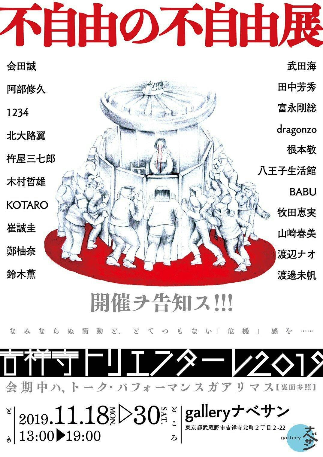 現在吉祥寺のgalleryナベサンで開催されている「不自由の不自由展」に元美術部の卒業生の鄭柚奈と、美術部顧問の崔誠圭が参加しています。