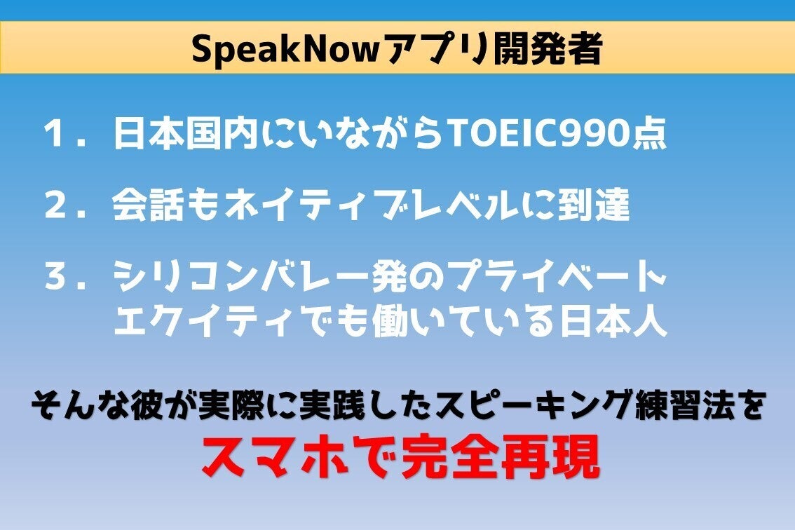 開発者自身が実践した方法と全く同じ体験ができる、かつ ”世界一の効率”を追い求めて設計されたのがSpeakNowです。
