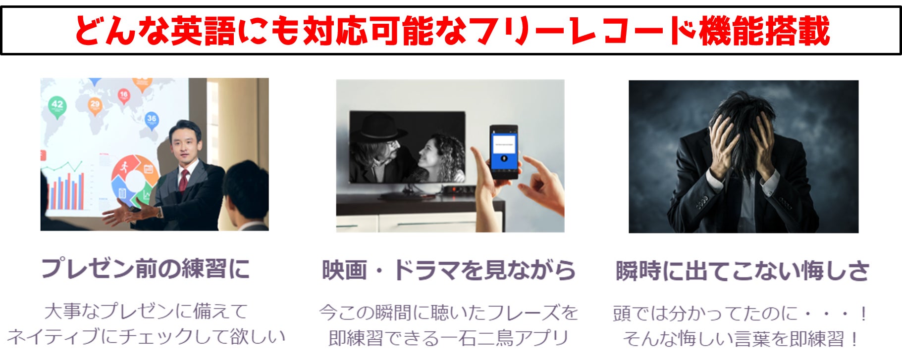 【4】フリーレコード機能(日常の全てを英語に変えて間違いを恐れず吹き込もう。)