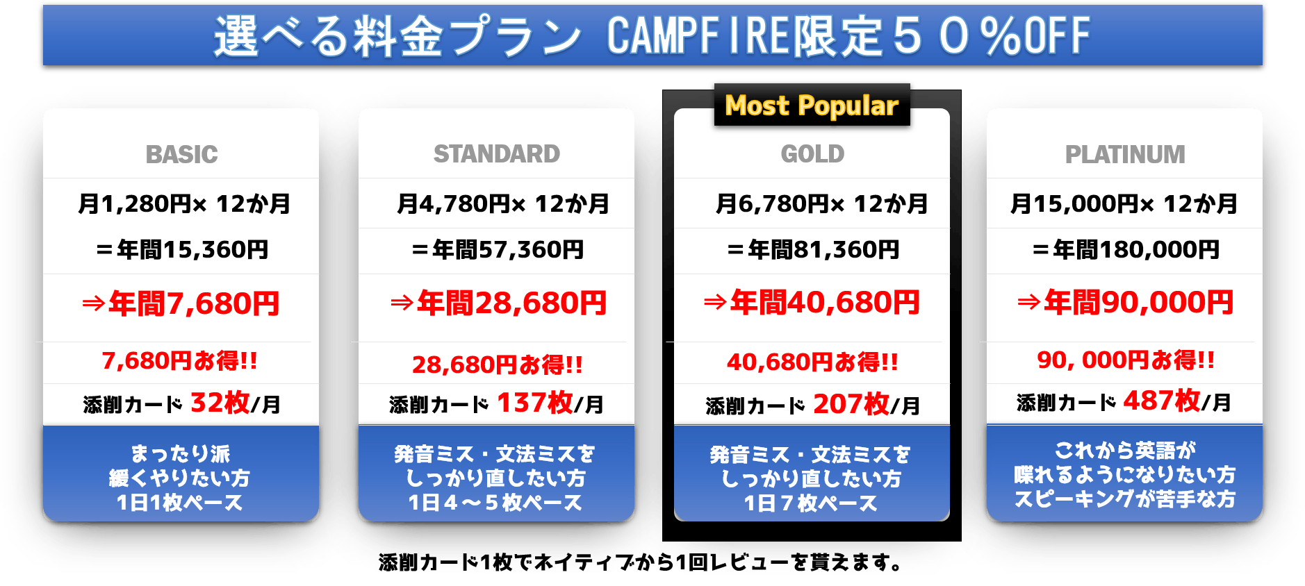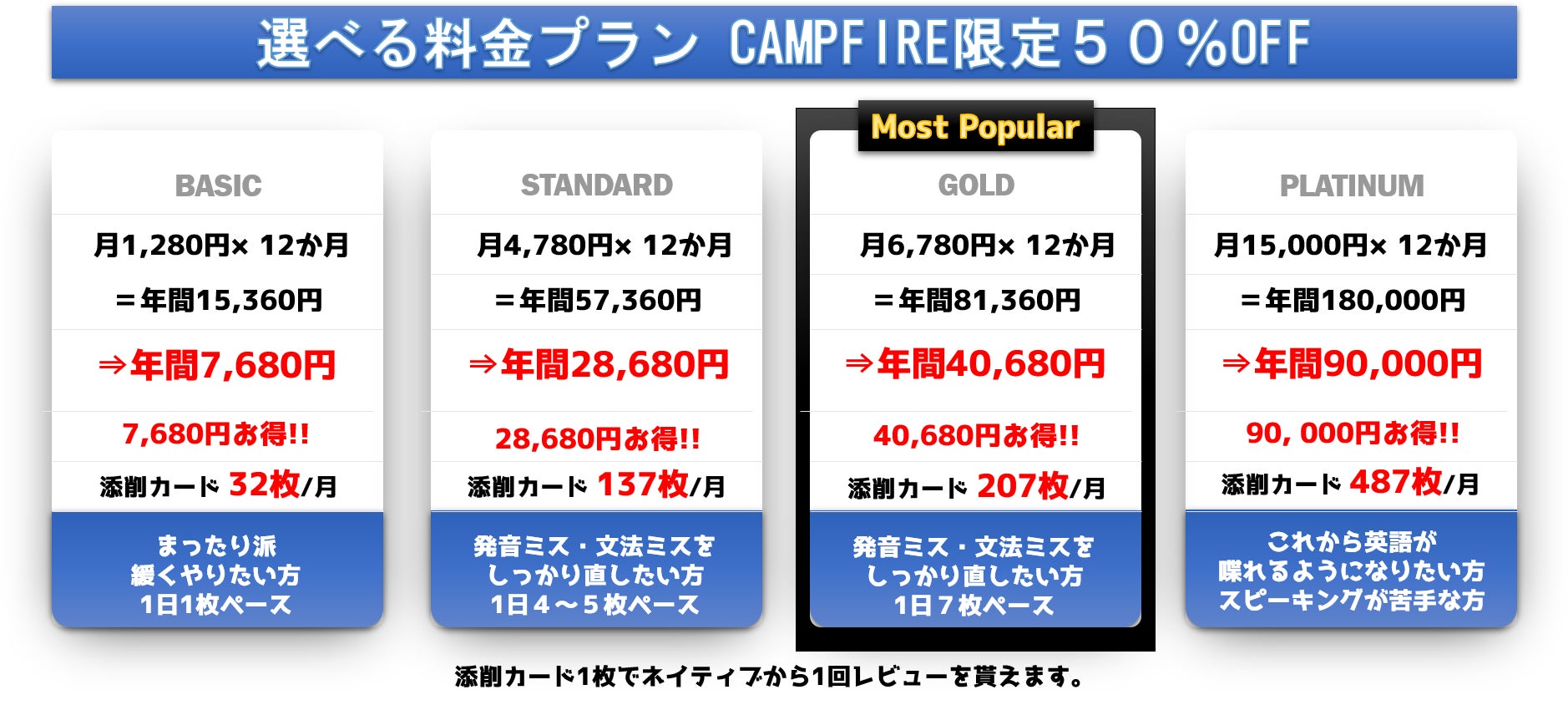 2020/05/24 19:11ご支援頂いた方、誠にありがとうございます。残り時間があと5時間を切りました。もうじき皆様にリターンを届けられると思うとわくわくが止まりません。このプロジェクトを初めて知った方は、以下をご覧下さい。私たちはスピーキング力向上に絶対の自信があります。これ以上の解はないと自負しております。<ネイティブからフィードバックが返ってくるスピーキングアプリ>【あなたがペラペラになるのを助けます】☆英語の音声を録音してアップロードするだけで、24時間以内にネイティブからフィードバック!☆文法ミスから発音まで。細かく指摘!☆録音もフィードバックも残るので、復習可能!【時間がなくてもできます】☆音を入れるだけなので、髪の毛ボサボサで練習してもOK!☆1回の練習にかかる時間は平均1分!【自己中に練習方法を選べます】☆文章読み上げから質問回答まで!☆カテゴリーの選択も!☆今見ている映画や、プレゼンの練習も、TOEIC対策だって、なんでも録音!☆学びたい英語のリクエストも受付致します!もしご興味が沸いた方はプロジェクトページもご覧下さい。目玉のCAMPFIRE限定50%リターンをお見逃しなく。 もっと見る