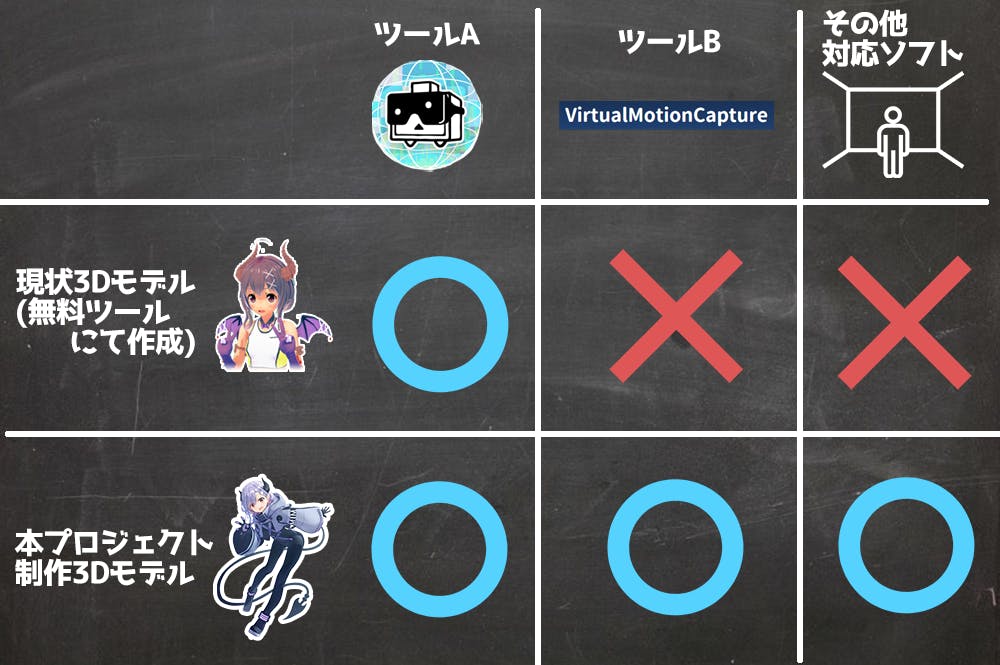 しかし使用している3Dモデルが無料ツールで作成した物であり、無料が故に3Dモデルの出力先が限られている状態です。(下記表参考)