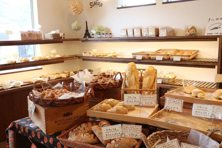 鹿児島市広木町でサミューゼと言うパン屋を個人経営しております。サミューゼとは、フランス語で楽しみ。と言う意味です。パン屋さんに行くのが楽しみ。選ぶのが楽しみという意味を込めて名付けました。住宅地の中にありますので地域密着を目指し、自家製酵母とイーストを併用しながら、全てのパンを手作りしています。