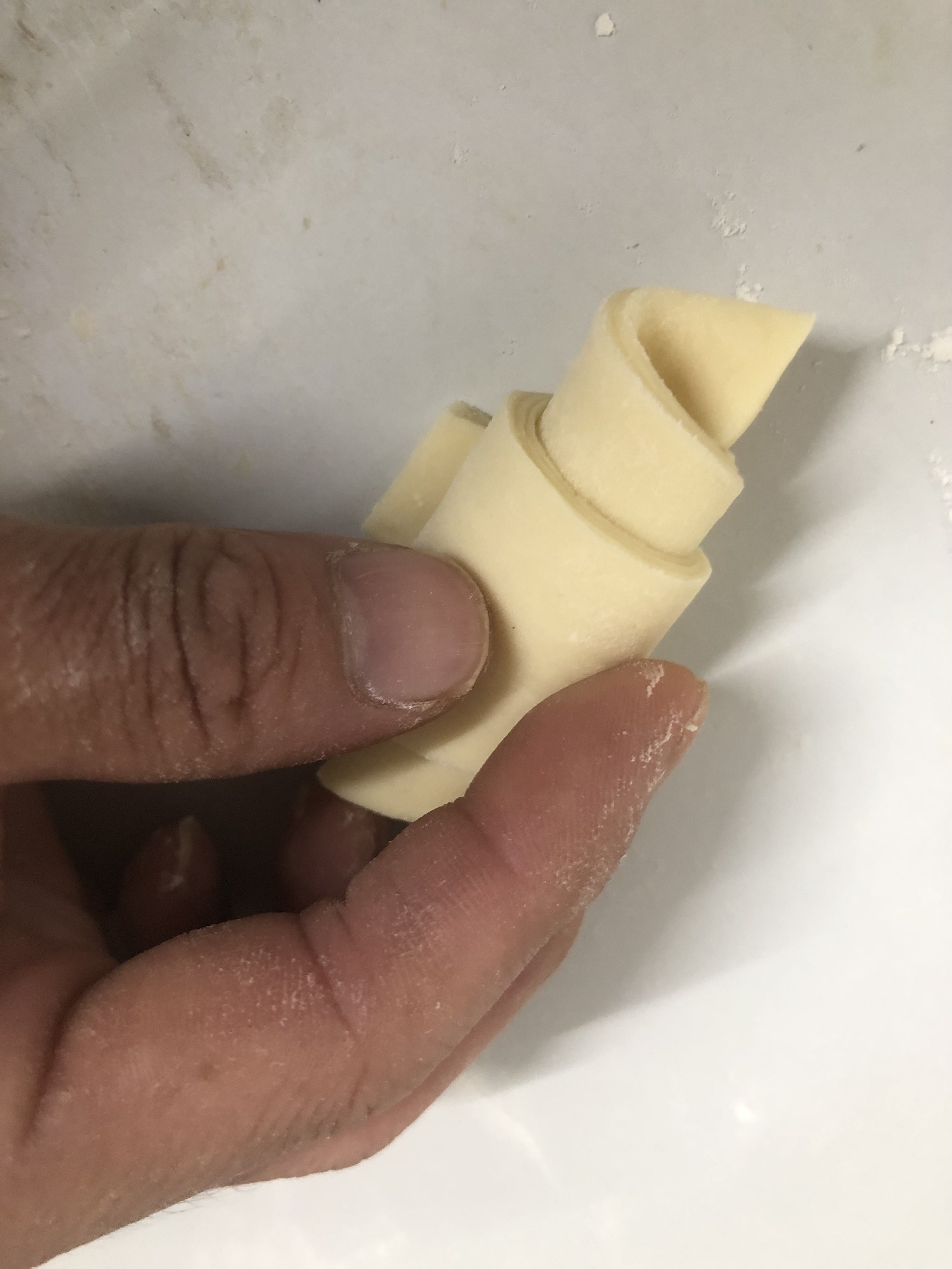 高校卒業後、神戸に本社のある株)ドンクに入社致しまた。当時は見て覚えろ!みたいな職人気質の方の下で毎日怒られ泣きながら仕事をしたのを思い出します。怒られながらも仕事以外は優しく、見捨てられる事は無かったので、絶対いつか見返してやる!と思い経験を積ませてもらいました。21歳の時に製造のチーフになり、商品企画などに参加し、毎月会う他県のチーフの方や商品企画に持ってくる斬新なアイデアのパンを目の当たりにして、このままじゃ置いていかれると危機感を持ちどんどんパン作りにハマっていきました。みんな良きライバルです。今でも困った時は相談にのって貰ってます。パン作りは日々のデータも大切で、その日の気温、湿度、水温、パンのこね上がる温度、分割して丸める力加減でも商品の出来に影響します。その部分は経験を積んで、自分の中に蓄積してその生地に応じて力加減を調整する感覚が大切です。