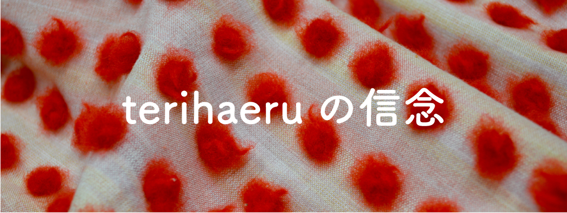 terihaeruは光を与えるもの。布はときめきを与えるもの。私のデザインには辛さや悲しさはいらない。