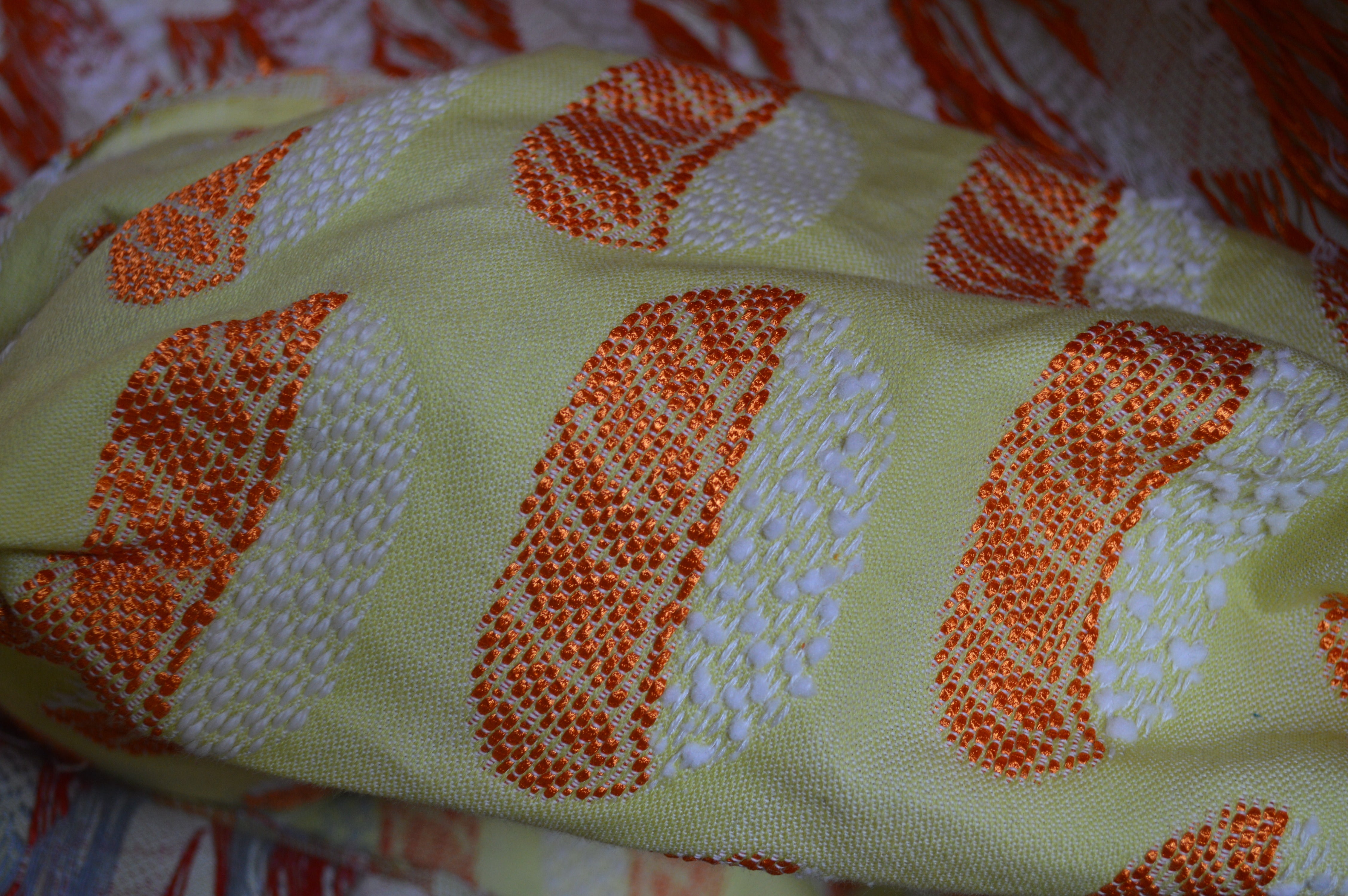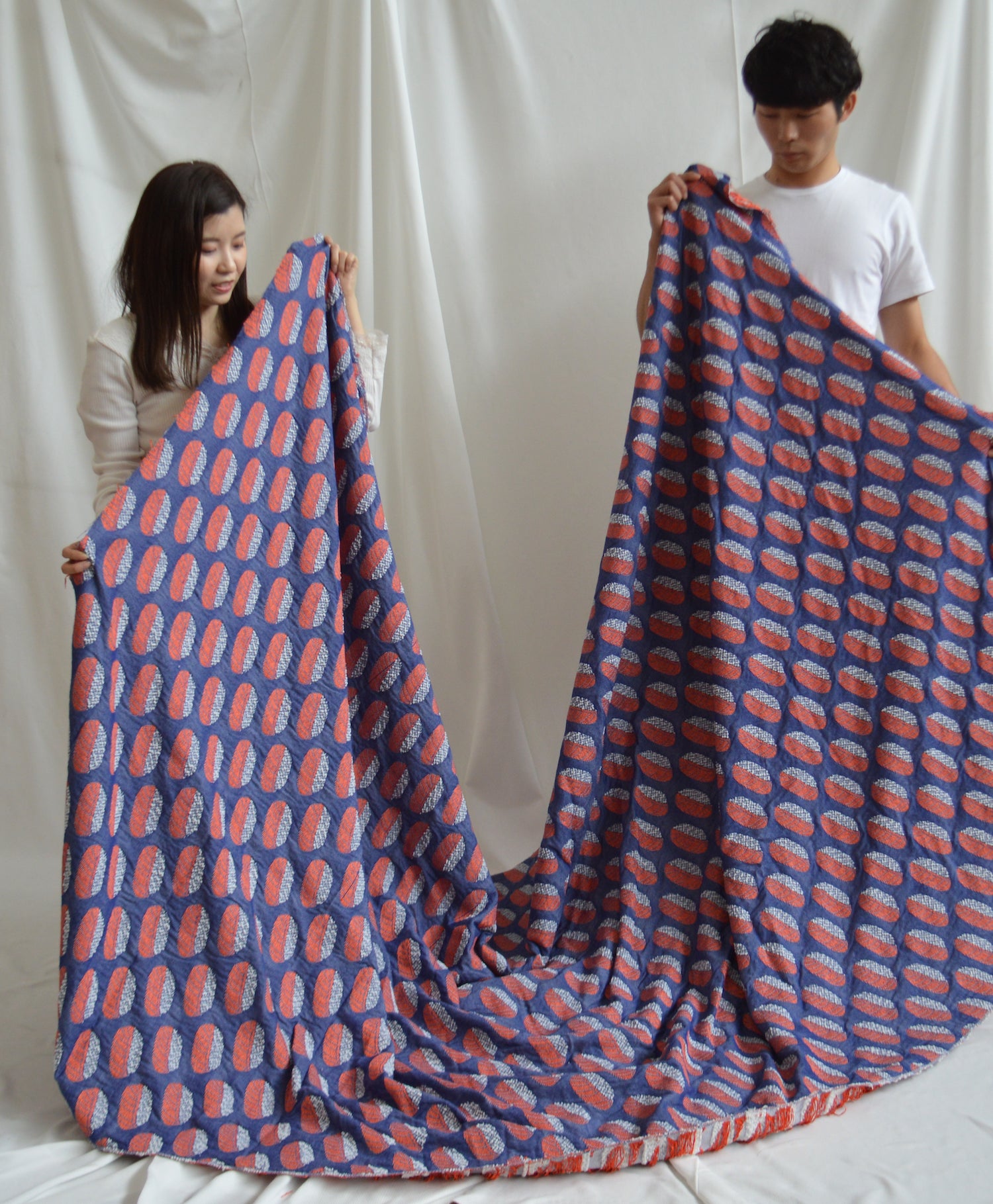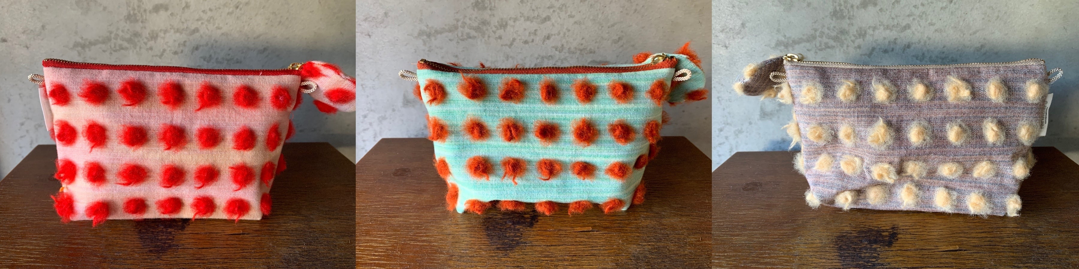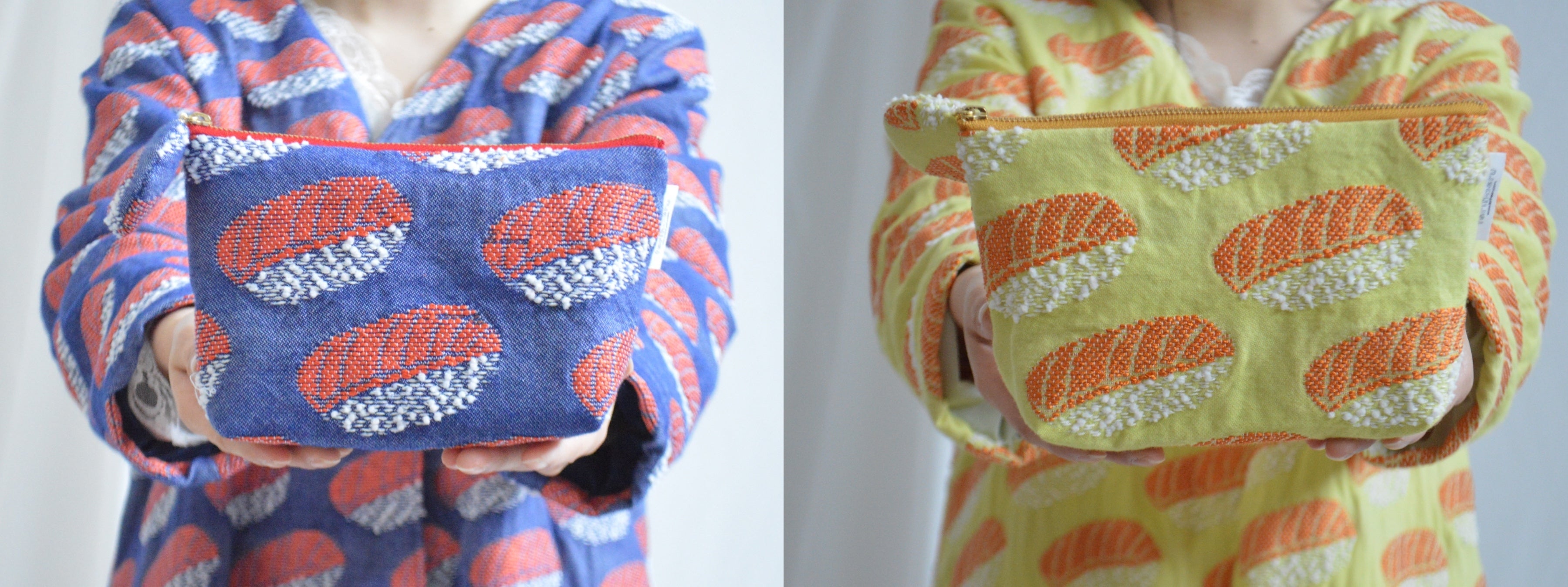 そんな感情をテキスタイルにしたくてこのデザインを考えました。また海外の方にもションヘル織機のものを手にとって欲しいなあと思い切ってアイコニックなデザインに振り切りました。